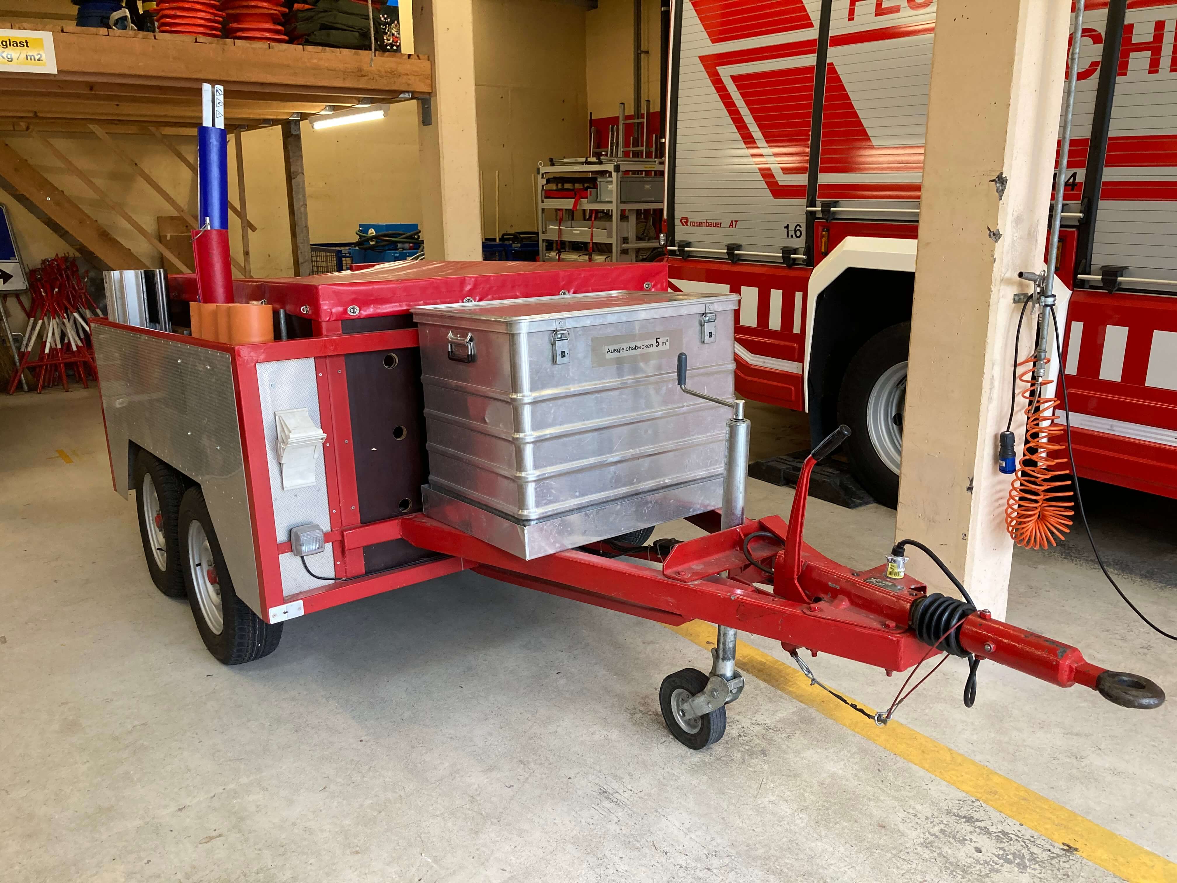 Schlauchausleger Anhänger (Kassetten herausnehmbar), Doppelachs mit Seitenkästen (Reifen ca. 2 Jährig). Es werden keine Schläuche mitverkauft